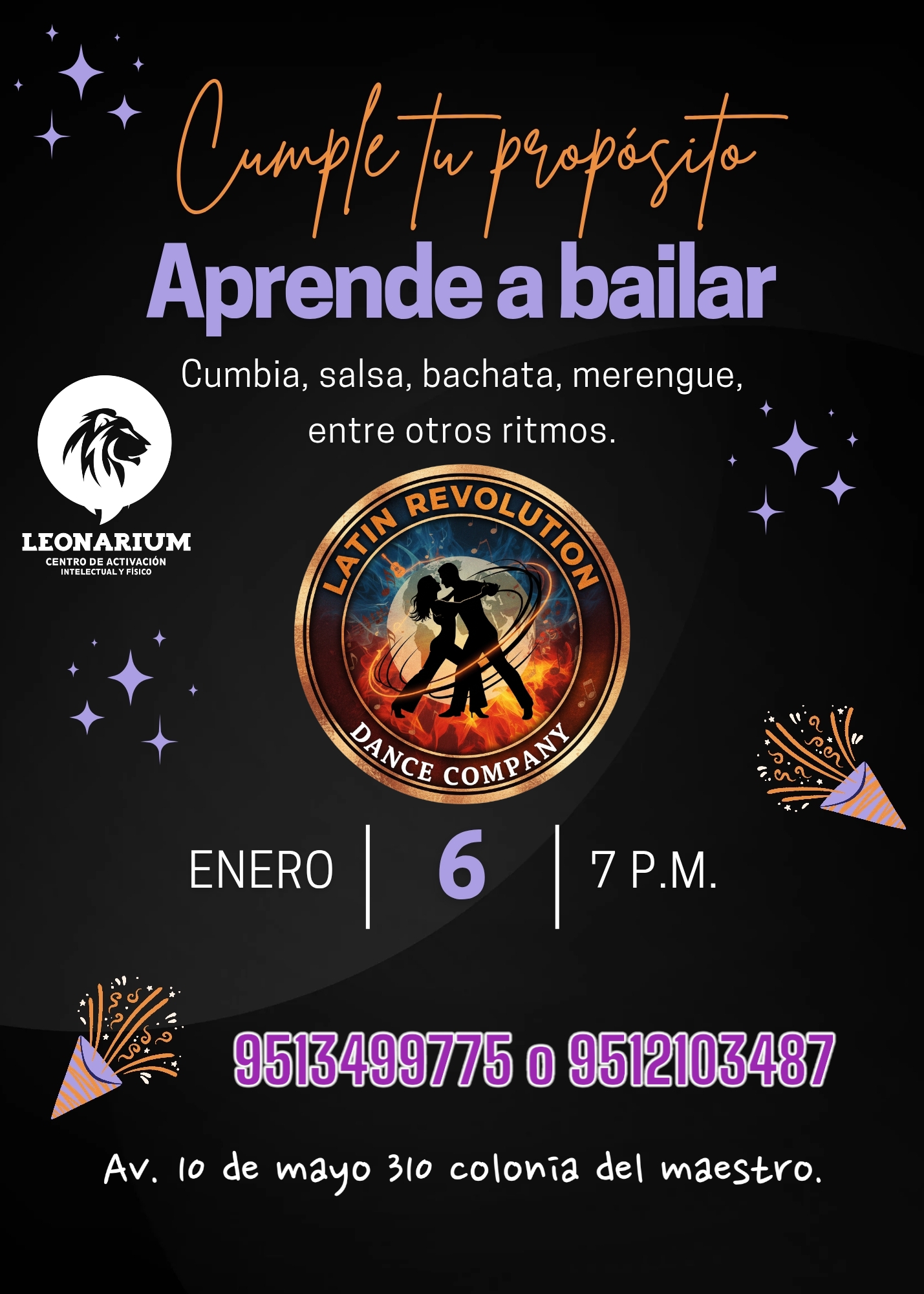 Aprende este 2026 a bailar cumbia merengue salsa bachata entre otros ritmos o si tienes algún evento boda o quinceaños te podemos ayudar con tu coreografia.