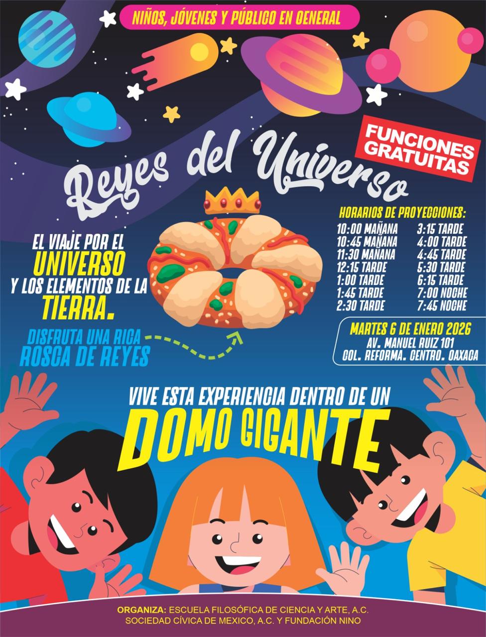 Experiencia planeada para niños y jóvenes principalmente, para un viaje por el universo y los elementos de la tierra dentro de un domo gigante.