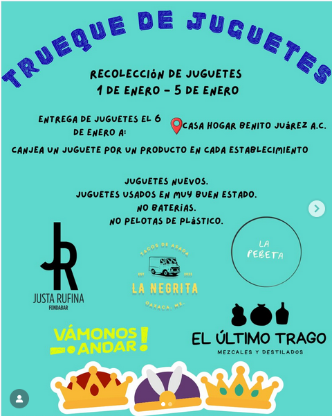 Diversos establecimientos se han unido para convertirse en puntos de recolección de juguetes. Durante sus horarios de atención, las personas pueden llevar un juguete y recibir a cambio un producto. Todos los juguetes recolectados serán entregados a Casa Hogar Benito Juárez A.C., con el objetivo de llevar alegría y apoyo a las niñas y niños que ahí residen.